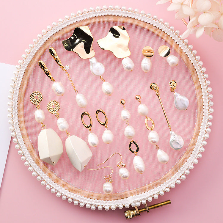 Vintage geometric metal pearl asymmetric earrings design personalized earrings
